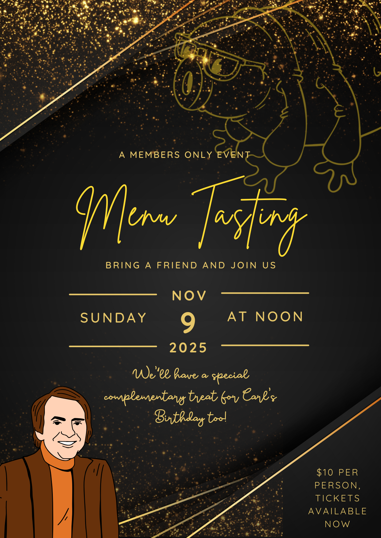 We’re getting ready to roll out our new menu, and our members are always the first to try everything — and tell us what you think. What better day to test out tasty drinks than Carl Sagan’s birthday? Join us for an exclusive members-only tasting, complete with a complimentary treat to celebrate Carl.